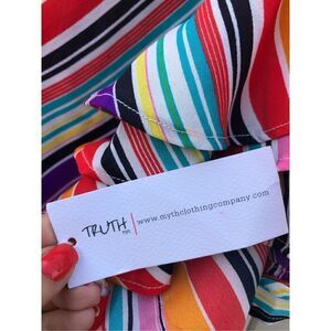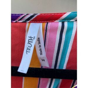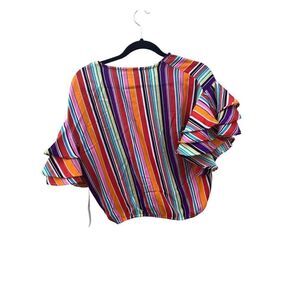 Women's NWT Truth NYC Multi Color Ruffle Sleeves Faux Wrap Top Size Medium