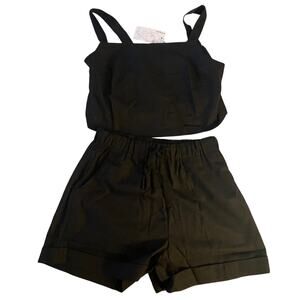 Womens - NWT - Two Piece Linen Blend Set Black Tank Top & Drawstring Shorts Sz M