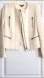 Details: ivory/cream shade, cushioned shoulder, round neck, long sleeves, hidden zip/snap closure, gunmetal hardware, front exposed zip chest pockets, front slant zip pockets, fully lined, mid-weight. Gorgeous!!!
