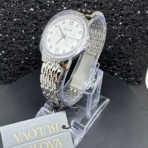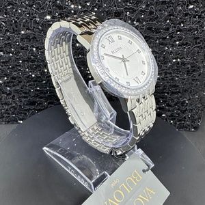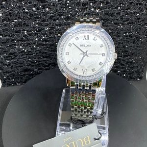 Women's NWT White Etched Face with Crystaled Bezel & Silver Chained Bracelet