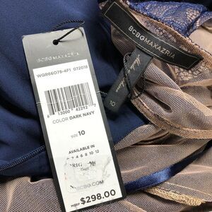 Womens NWT BCBG MaxAzria Cascading Back Ruffle Side Slit Gown Navy Size 10