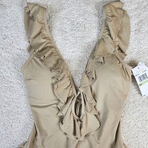 Keywords: Michael Kors, swimsuit, one piece, ruffle, plunge, khaki, size 8, swimwear, beach, pool, vacation, resort, NWT, new with tags