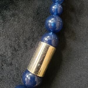 Womens Napier Dark Blue Large Bead and Bright Brass Kumihimo Collar Necklace.