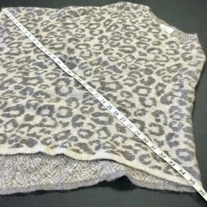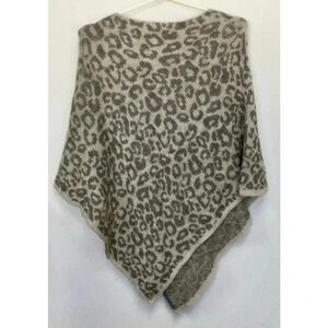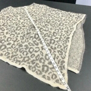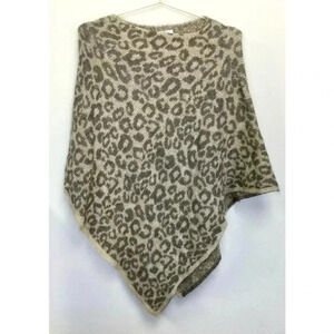 Pre-owned Nardi & Tagliaferri knitted poncho in a grey and white leopard print. The poncho is made of 60% acrylic, 30% mohair, and 10% wool. It is one size fits all and measures approximately 36 inches across the shoulders and 34 inches from the top of the shoulder to the bottom hem. The poncho is in excellent condition with no visible signs of wear or damage. It is dry clean only and made in Italy. The poncho weighs 17.3 ounces.