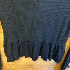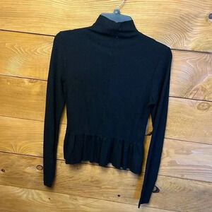 Womens Nation black MD long sleeve high collar ruffled hem tencel polyester Y2K