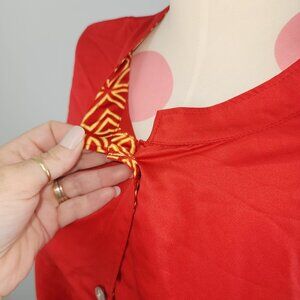 Women's Natori Chinese Style Button Down Blouse Wide Sleeves XL Red Shiny Look