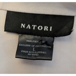 This luxury Women's Natori Pink Satin Nightgown in Size L features a solid pink color with white trim, nylon piping accents, and a collared neckline with a button closure. Made of 100% polyester satin fabric, this long sleeve gown is machine washable for easy care. Perfect for all seasons, this sleep dress from the renowned brand Natori is a stylish and elegant choice for women looking for a comfortable and feminine nightwear option.