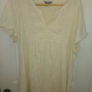 Super cute cream T shirt with darling details front and back. Longer length. Worn once. Great condition. From Cabela's.