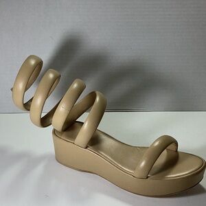 Women's Natural Snake-embossed Leather Ankle Wrap Sandals
