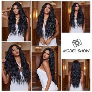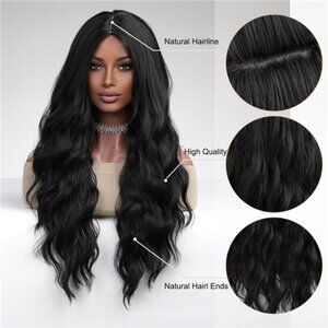 Womens Natural Synthetic Hair Heat Resistant Black