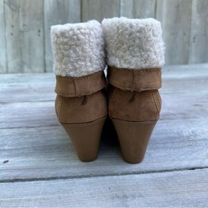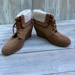 Women's Nautica Camel Suede Ankle Boots Sherpa Cuff Wedge Heel Size 10