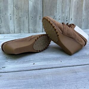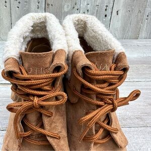 Women's Nautica Camel Suede Ankle Boots Sherpa Cuff Wedge Heel Size 10