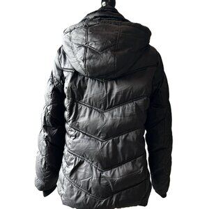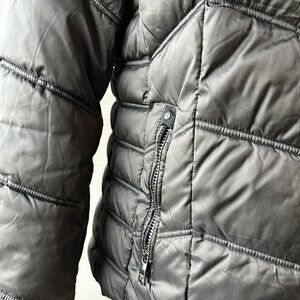 Women's Nautica Faux Fur Trim Hooded Mid-Length Black Puffer Jacket Size XL
