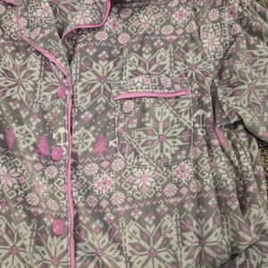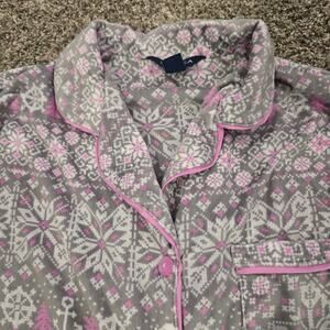 Excellent condition, women's Nautica gray and purple snowflake fleece pajama set. This is the SOFTEST fleece!! The pants have an elastic waist. The material does stretch some.