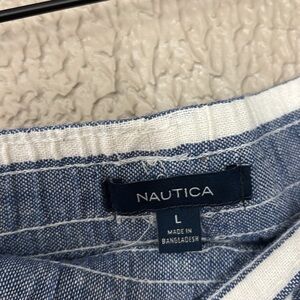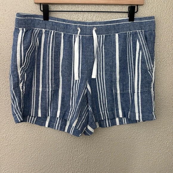 Women’s Nautica Striped Blue White Linen Blend Shorts, Large, Summer