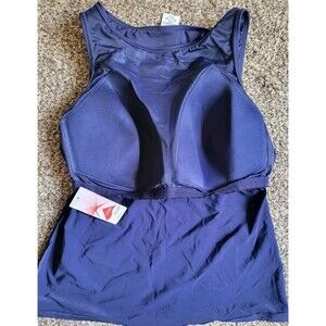 Women's Navy 16P Swim Top High Neck Padded Bra Lands' End Modest Solid S611