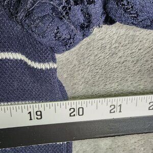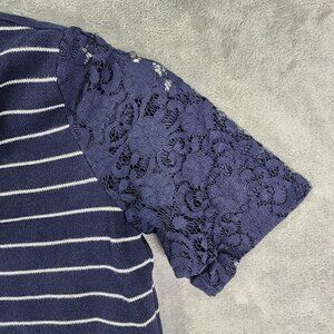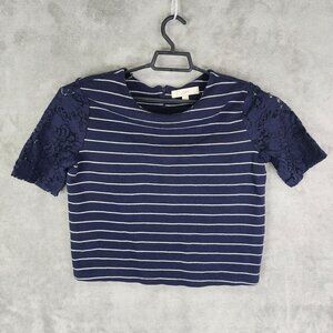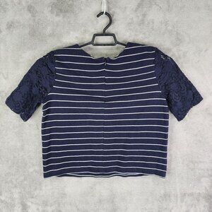 Womens Navy Ann Taylor Loft Striped Crop Top Lace Sleeves Round Neck Size M