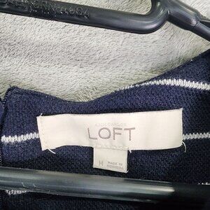 This Ann Taylor Loft top features a classic navy stripe design with elegant lace sleeves, crafted for comfort and style. The medium size ensures a flattering fit, while the cotton and polyester blend provides durability and softness.