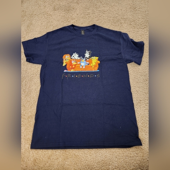 Womens Navy Blue Bluey Short Sleeved T Shirt Friends Logo Size M Crew Gildan