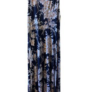 This navy floral maxi dress is a delightful blend of elegance and comfort. Featuring a sleeveless design, a keyhole ring accent, and flowing fabric, it’s perfect for embracing grace. Machine washable, it combines ease with timeless style for those memorable moments.