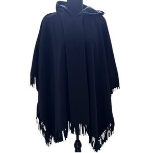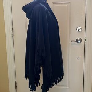 Women’s Navy Blue Fringed Hooded Cape/Poncho