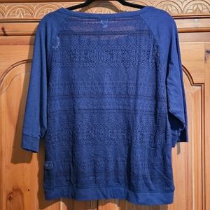 Women's Navy Blue MV Sport Moose Graphic 3/4 Sleeve Lace Back Shirt Size XL