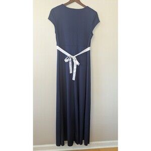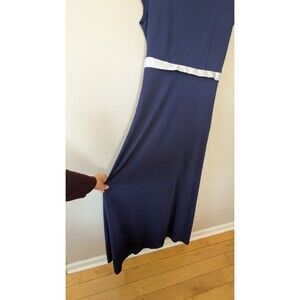 Women's Navy Blue Maxi Dress Gown Size 10 Navy Blue White Formal Cap Sleeve USA