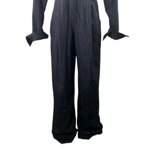 Women's Navy Blue Pinstriped Collared Long Sleeve Wide Leg Blazer Jumpsuit Size M