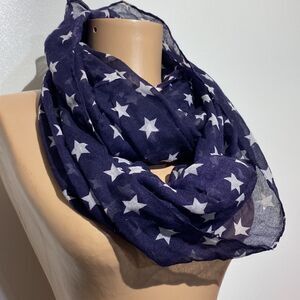 Women's Navy Blue Star Print Lightweight Infinity Scarf Size 64x26