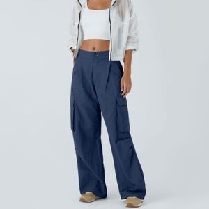 Elevate your style with these chic navy cargo pants. Perfect for a casual day out or a relaxed evening. Comfortable and versatile, these pants are a must-have in your wardrobe.