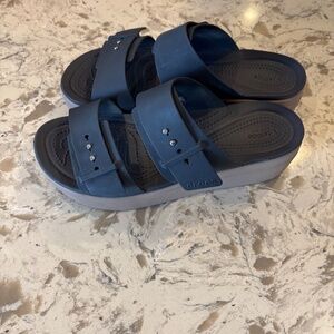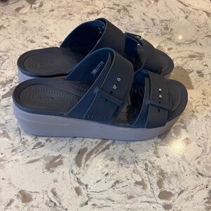 Women!s Navy Crocs Brooklyn Low Wedge Sandals W 10 EUC