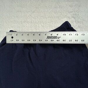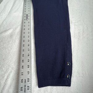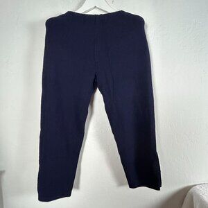 Womens Navy Elastic Waist Cropped Pants Knit High Rise Pockets Casual Pull-On