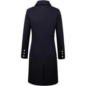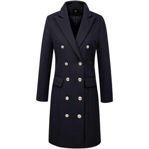 Womens Navy Fall Winter Wool Coats Double Breasted Midi Peacoat Trench Coats
