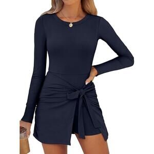 Womens Navy Long Sleeve Tie Waist Skort Romper Tennis Golf Athleisure Casual