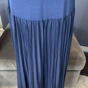 Women’s Navy Off-Shoulder Maxi Dress Pleated Skirt Size L