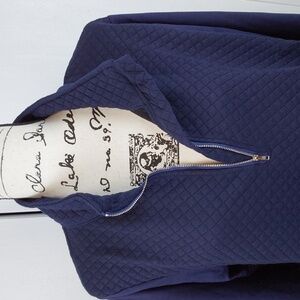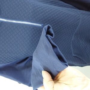 Womens Navy Quilted Textured Navy Blue Hoodie Silver Front Zipper Sz.XL