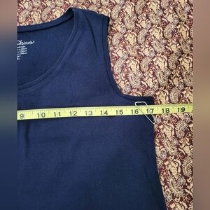 Casual cotton, navy sleeveless top with slight v neck. Wear on its own or under a sweater/blazer. Chico's brand size 1.