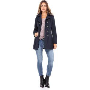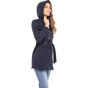 Women's Navy Soft Shell Trench Coat with Detachable Hood