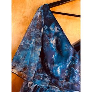 Women's Navy V-Neck Bell Sleeve Floral Print High-Low Hemline Maxi Dress Size L. This is a gorgeous dress. It is short in the front and long in the back. Great Condition. Smoke Free Home.