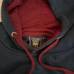 Navy Oxford University Hoodie with crimson accents fits like an oversized look