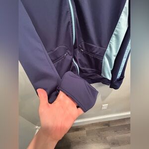 Women’s Navy and Light Blue Jacket Alo yoga athletic exercise track jacket