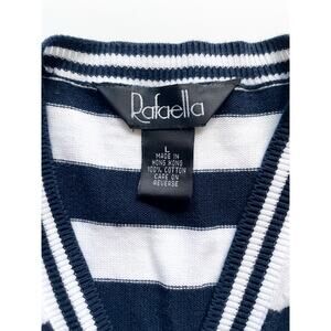 Women's Navy and White Striped Nautical Short Sleeved Sweater Cardigan Size L