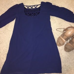 Navy boutique dress with cut out back! Sleeves are thin body is not!