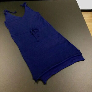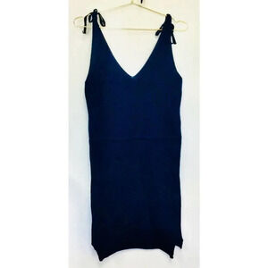 Womens Navy Blue V-neck Tie Waist Sweater Dress Size Medium