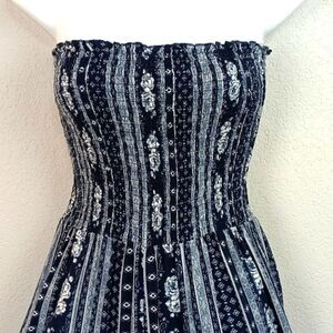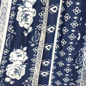 Women's Navy Blue and White Boho Floral Striped Sleeveless Jumpsuit Sz L