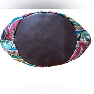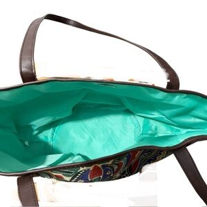 Womens Neiman Marcus Multicolor Print Design Raffia Faux LeatherTote Bag