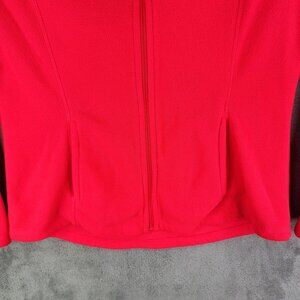 Womens Neon Red Old Navy Fleece Jacket Full Zip Mock Neck Long Sleeve Size M