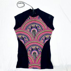 Ripcurl Black Neon Printed Short Sleeve Wetsuit Top Women’s