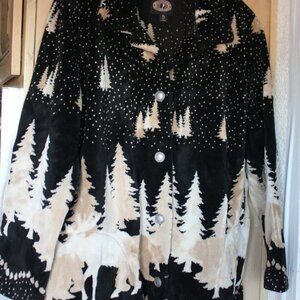 County Clothing Company Fleece Jacket Deer Forest Silver Button Up Women Size XL