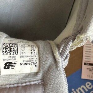 New Balance 574, excellent used condition. Worn 2-3x with socks and no longer fit. They're gray with a subtle pink/rose gold trim.